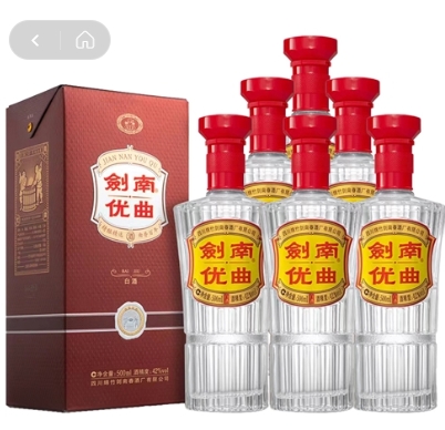 • 商品名称:剑南优曲 剑南春 剑南优曲 52度 浓香型白酒 500m|*6瓶 整箱装